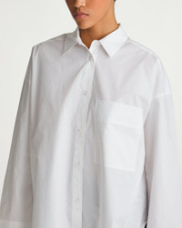 Shirt Derris from By Malene Birger. A classic shirt made of soft organic cotton. The shirt has a straight and relaxed fit in a classic design. It features buttons at the front with a classic collar and is slightly oversized with a rounded hem at the bottom. The shirt has a decorative patch pocket on one chest. The product belongs to the category W Sustain as it is made of sustainable materials. Size and Fit - Fits true to size, choose your usual size - The model is 181 cm tall and is wearing size S Specification - Article number - ID: 174228-010 - Brand: By Malene Birger - Color: White - Washing Instructions: Machine wash - Made of: 100% Organic cotton