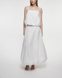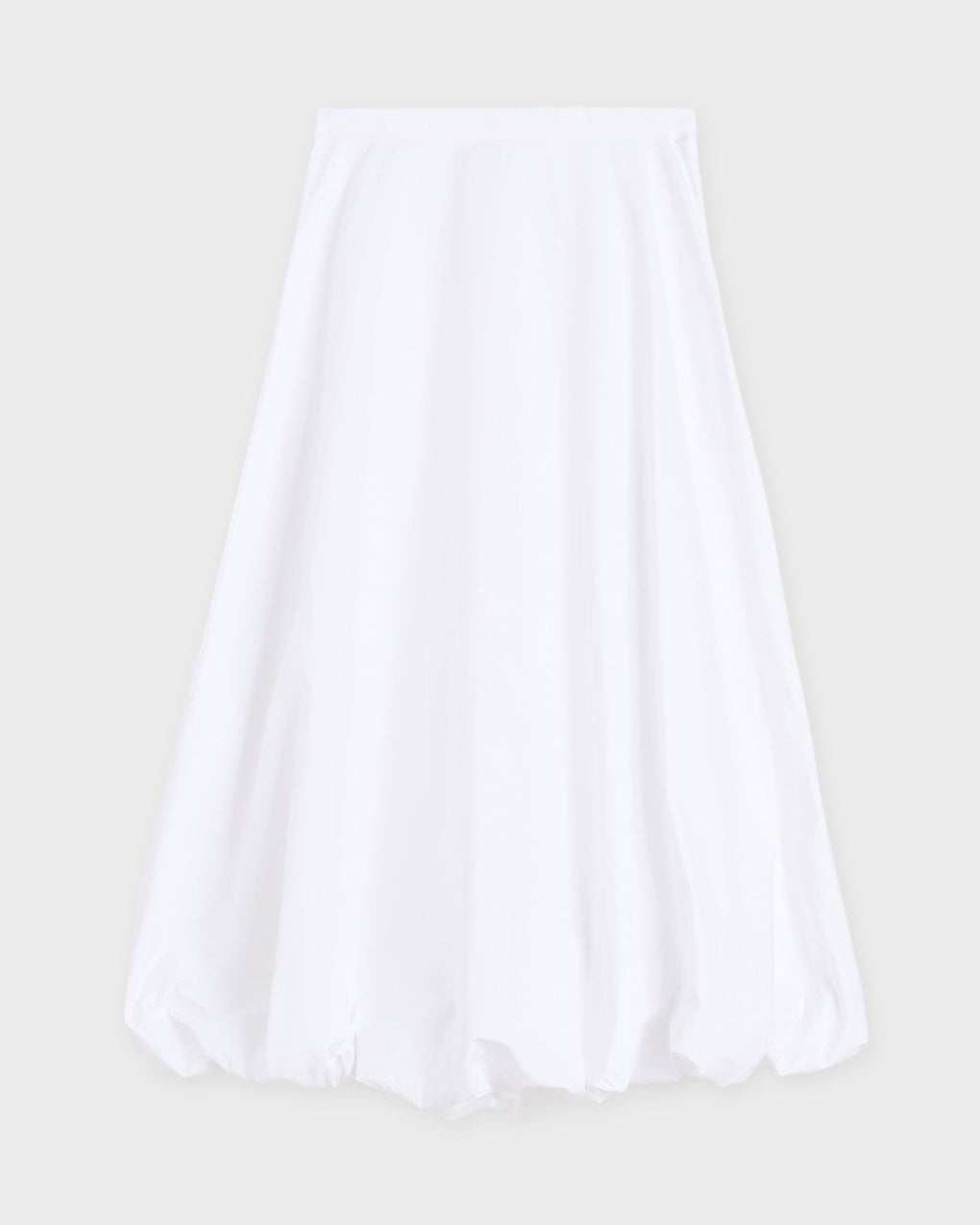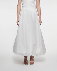 Skirt Aubrey from By Malene Birger. A sophisticated maxi skirt crafted from 100% organic cotton. It features a high waist, side zip closure, and a voluminous bubble-shaped hem with an elastic finish. Fully lined for added comfort, the skirt falls to ankle length.The product belongs to the W Sustain category because it's made of sustainable materials. Size and Fit - Fits true to size, choose your usual size Specification - Article number - ID: 176057-010 - Brand: By Malene Birger - Color: White - Washing Instructions: Machine wash - Made of: 100% organic cotton