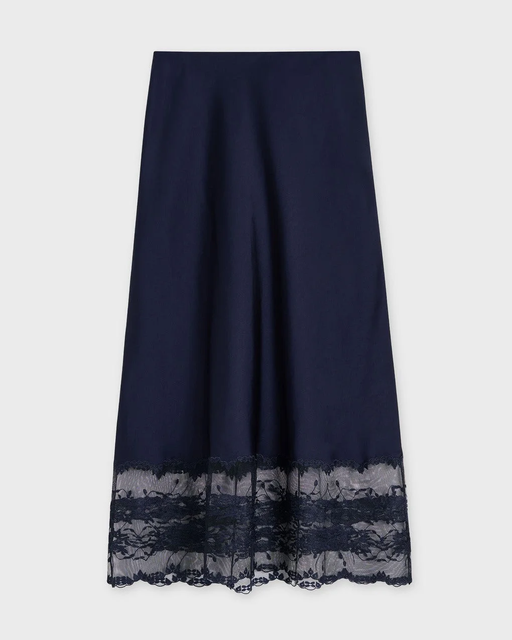 Skirt Blake from Malene Birger. Add a touch of modern bohemian elegance to your wardrobe with the Blake Skirt. Crafted from satin with a silk-like sheen, this maxi design is detailed with a delicate lace trim for a sophisticated finish. The elastic waistband and A-line silhouette make it as effortless for festive occasions as it is for everyday wear. Made from Eastman Naia™, a cellulosic fibre derived from responsibly sourced wood pulp, the material is quick-drying, biodegradable, and exceptionally soft against the skin — ensuring comfort and durability season after season. Size and Fit - Fits true to size, choose your usual size - The model is 175 cm tall and is wearing size 36 Specification - Article number - ID: 177351-865 - Brand: By Malene Birger - Color: Night - Washing Instructions: Delicate machine wash at 30°c - Made of: 76% acetate, 24% polyester