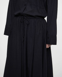 Skirt Pheobes Maxi from By Malene Birger. Pheobes is an airy maxi skirt made from 100% organic cotton, perfect for the spring and summer seasons. It features a high-rise elastic waistband with adjustable drawstrings for a comfortable fit. The loose silhouette and embroidered lace trim at the hem add a feminine and relaxed feel. This product is part of the W Sustain category as it is made from sustainable materials. Size and Fit - Fits true to size, choose your usual size - The model is 172 cm tall and is wearing size 36 Specification - Article number - ID: 176069-000 - Brand: By Malene Birger - Color: Black - Washing Instructions: Machine wash - Made of: 100% organic cotton