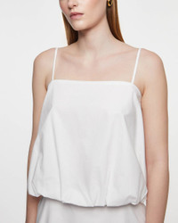 Top Mia from By Malene Birger. The Mia top is an airy piece crafted from crisp organic cotton with a voluminous silhouette. Its minimalist design is balanced by an elasticated hem and adjustable shoulder straps for a flexible fit. The straight neckline adds a sleek, refined look. Size and Fit - Fits true to size, choose your usual size - The model is 172 cm tall and is wearing size 36 Specification - Article number - ID: 176060-010 - Brand: By Malene Birger - Color: White - Washing Instructions: Machine wash - Made of: 100% organic cotton