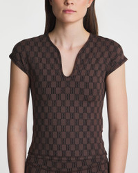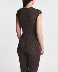 Venazia Athletic Top from By Malene Birger. Trendy sports top that is perfect for going to the gym or for casual occasions. Designed for a body-hugging fit in sporty material. Features a V-neck and slightly dropped shoulders. Designed with the brand’s monogram pattern. Size and Fit - Fits true to size, choose your usual size - The model is 176 cm tall and is wearing size S Specification - Article number - ID: 174259-681 - Brand: By Malene Birger - Color: Mahogny - Washing Instructions: Machine wash - Made of: 46% polyamide recycled, 30.5% polyamide, 23.5% elastane