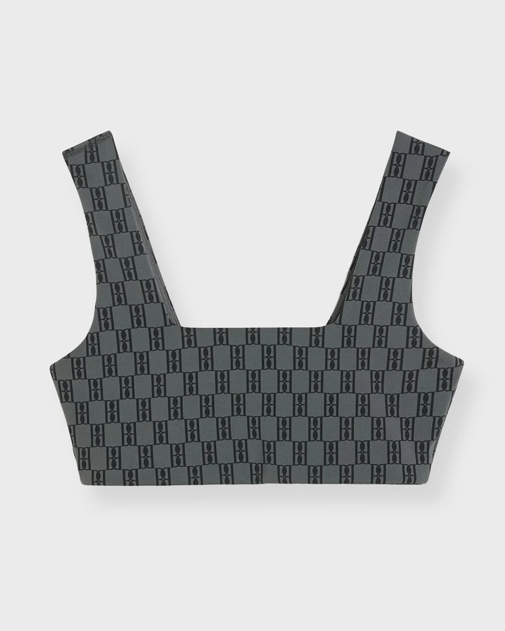 Top Braga from By Malene Birger. Crafted with a soft, stretchy feel, this athletic top features a signature monogram print. Designed with wide straps, a square neckline, and a supportive elastic band, it offers a comfortable fit and a refined, sporty finish. Size and Fit - The model is 176 cm tall and is wearing size S Specification - Article number - ID: 177824-091 - Brand: By Malene Birger - Color: Grey - Washing Instructions: Machine wash at 40°C. Do not tumble dry.