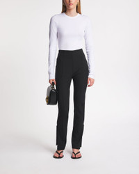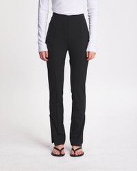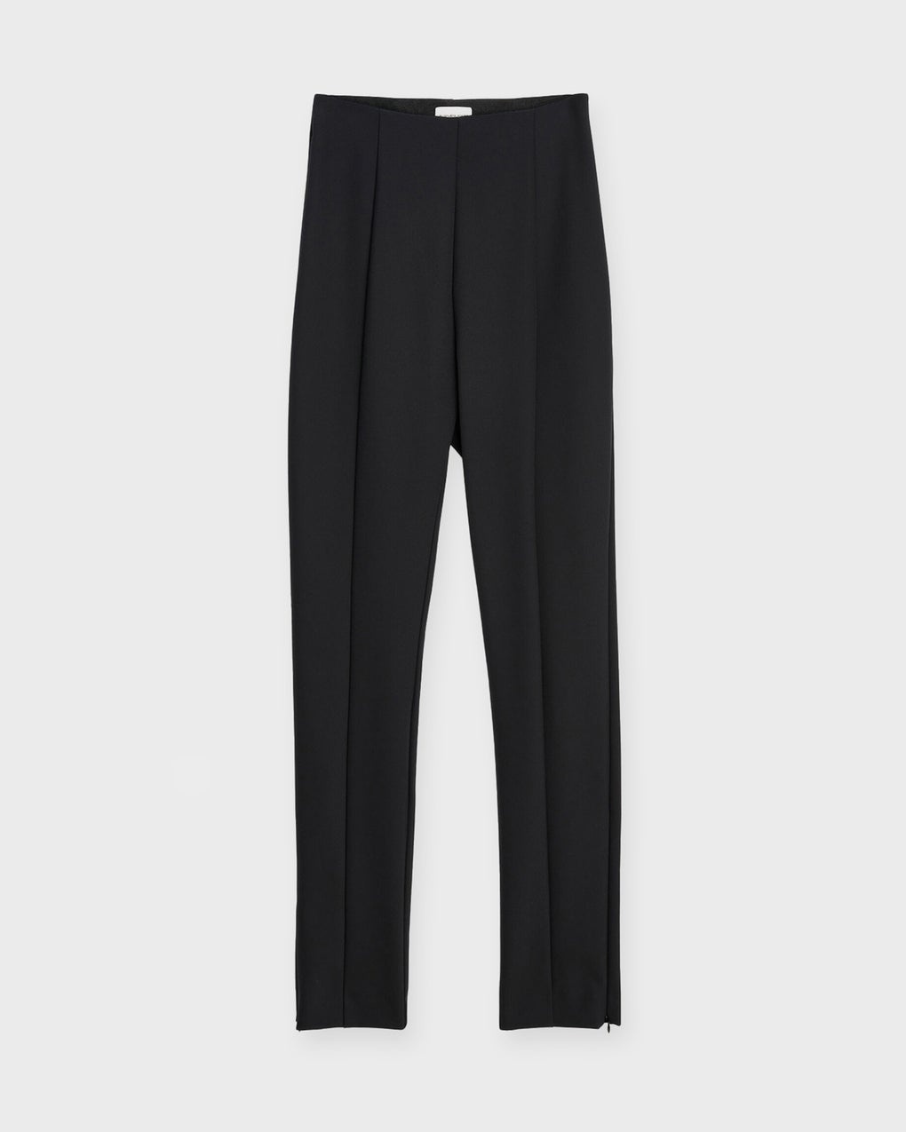 Trousers Lisaboa from By Malene Birger. Trendy suited trousers in a tight design. Decorative press folds and closable slits at the leg ends. Closes with a hidden zipper in the side seam. High rise waist. Made of a soft and stretchy material for optimal comfort and a body-hugging fit. Stretch level 2/3. Size and Fit - Fits true to size, choose your usual size - Garment length: 108 cm - length of leg inseam: 81 cm - waist : 66 cm - thighs: 50 cm - leg opening: 33 cm Specification - Article number - ID: 163281-000 - Brand: By Malene Birger - Color: Black - Washing Instructions: Dry clean - Made of: Made of 88 % polyamide, 12 % elastane