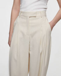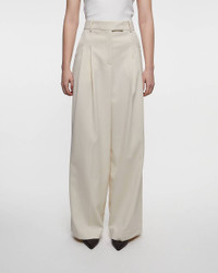 Trousers Cymbaria High-Waist from By Malene Birger. Elegant tailored trousers with a high waist and wide legs, designed to combine comfort with sophisticated style. Made from a sustainable blend including recycled polyester and LENZING™ ECOVERO™ viscose, they offer a modern silhouette with pressed creases and belt loops. Size and Fit - Fits true to size, choose your usual size Specification - Article number - ID: 176051-987 - Brand: By Malene Birger - Color: Pearl - Washing Instructions: Dry clean - Made of: 69% polyester recycled, 30% viscose (lenzing (TM) ecovero (T M) ), 1% elastane