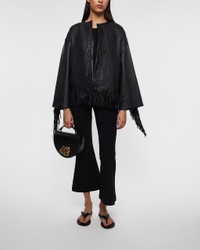 *Vilanna trousers from By Malene Birger. A stylish trousers made in a luxurious mix of materials. The design features a comfortable waist, flared silhouette and cropped legs. Wear it all week with an oversized blazer and knitwear for a complete look. Size and Fit - Fits true to size, choose your usual size - The model is 177 cm tall and is wearing a size S Specification - Article number - ID: 171321-000 - Brand: By Malene Birger - Color: Black - Washing Instructions: Machine wash - Made of: Made of56% recycled polyester, 39% polyester, 5% elastane