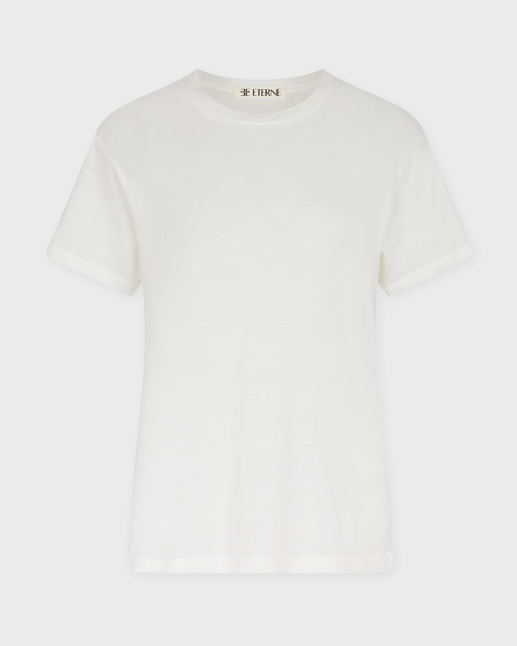 T-shirt Short Sleeve Boyfriend from Eterne. A short-sleeved T-shirt made from a soft cotton and modal blend. It features a relaxed fit, raw-edge neckline, and a unisex feel – a versatile wardrobe essential for everyday wear. Size and Fit - Fits true to size, choose your usual size - The model is 175 cm tall and is wearing a size S Specification - Article number - ID: 177294-289 - Brand: Eterne - Color: Ivory - Washing Instructions: Machine wash cold, tumble dry low - Made of: 50% Cotton, 50% Modal