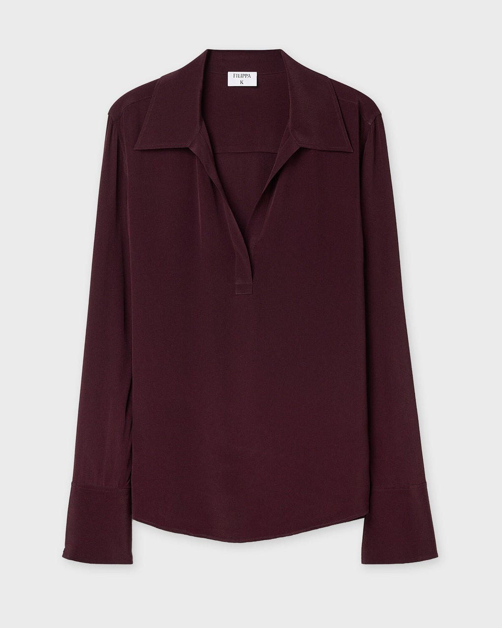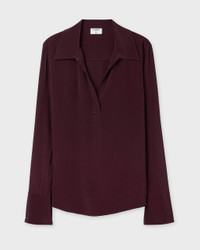 Blouse Half Placket from Filippa K. A relaxed-fit blouse draped in a lightweight, matte Naia acetate blend. Style it with tailored trousers for a look that easily transitions from the office to the evening. Size and Fit - Fits true to size, choose your usual size - The model is 176 cm tall and is wearing size 36 Specification - Article number - ID: 176844-350 - Brand: Filippa K - Color: Burgundy - Washing Instructions: Dry clean - Made of: 64% Acetate (Naia), 36% Viscose