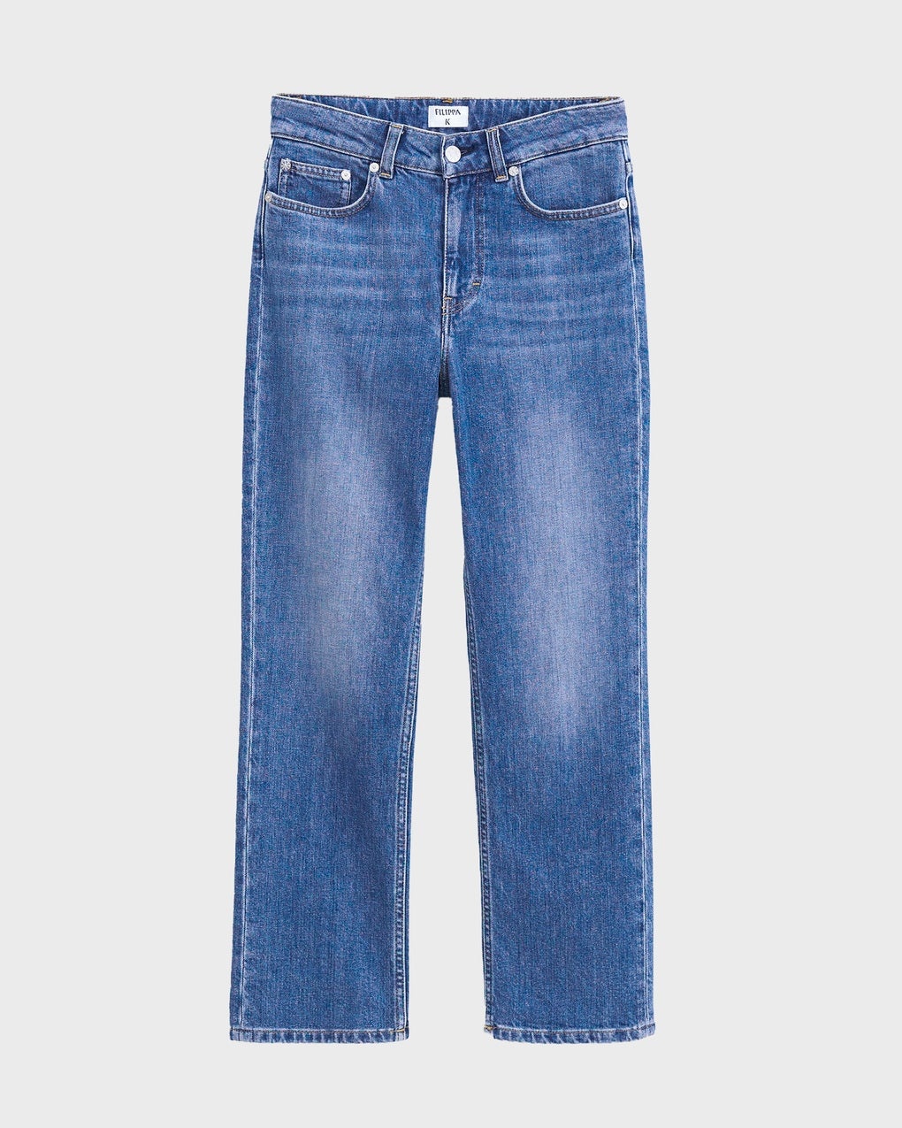 Jeans Stella Cropped from Filippa K. Elegant jeans designed with a slim straight fit, mid-rise waist, and cropped length. Made from organic cotton denim in a mid-blue shade with a slight stretch. Style them with a crisp white shirt for a simple and sleek look. This product belongs to the W Sustain category as it is made from sustainable materials. Size and Fit - Fits true to size, choose your usual size - The model is 176 cm tall and is wearing size 27 Specification - Article number - ID: 175969-900 - Brand: Filippa K - Color: Mid blue - Washing Instructions: Machine wash - Made of: 98% Cotton (organic), 2% Elastane