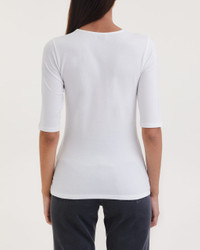 T-Shirt Cotton Stretch Elbow Sleeve White