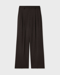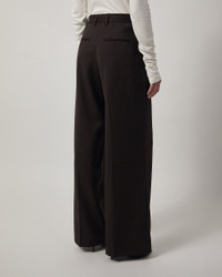 Trousers Darcey Wool from Filippa K. These sleek trousers feature a high waist, voluminous pleats, and a wide, extra-long leg shape for a sophisticated look. Made from a medium-weight black wool blend, with pressed creases, slanted side pockets, and rear jet pockets. Size and Fit - Fits true to size, choose your usual size - The model is 176 cm tall and is wearing size 36 Specification - Article number - ID: 176842-083 - Brand: Filippa K - Color: Brown - Washing Instructions: Dry clean - Made of: Made of: 54% Polyester, 44% Wool (mulesing free merino), 2% Elastane