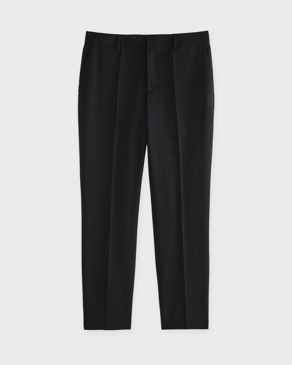 Emma Cropped Wool trousers from Filippa K. Elegant suit trousers with a mid-waist. The trousers are designed with press pleats both front and back, belt loops at the waist. The trousers have a tapered and cropped silhouette. Closes with zipper, button and hook. Size and Fit - Fits true to size, choose your usual size - The model is 176 cm tall and is wearing size 36 Specification - Article number - ID: 170248-000 - Brand: Filippa K - Color: Black - Washing Instructions: Dry clean - Made of: Made of 98% Wool (mulesing free merino), 2% Elastane
