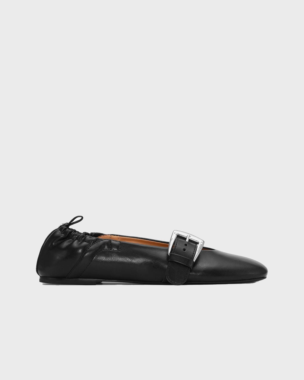 Ballerina Butterfly Strap Crinkle Oleate from GANNI. These ballerina shoes feature a slip-on design with pull tabs and buckle closure details. This style includes Oleatex, a plant-based material used as a sustainable alternative to traditional leather. The product belongs to the W Sustain category as it is made from sustainable materials. Size and Fit - Fits true to size, choose your usual size Specification - Article number - ID: 176165-000 - Brand: Ganni - Color: Black