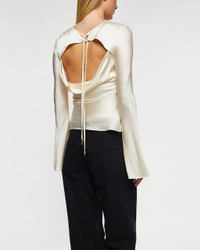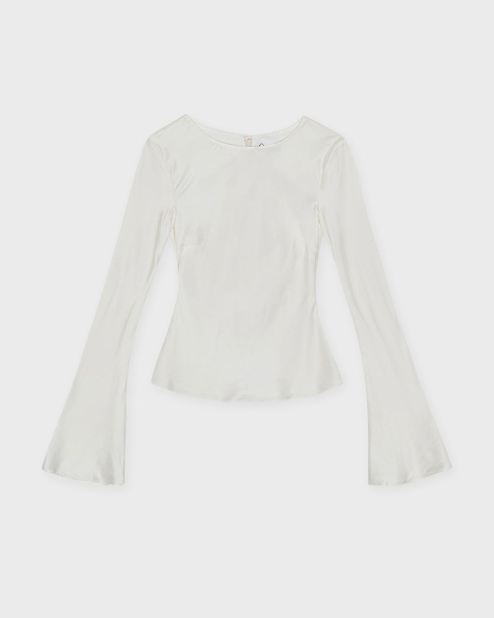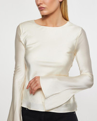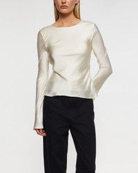 Blouse Solid Stretch Satin Long Sleeve Egret