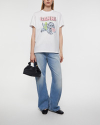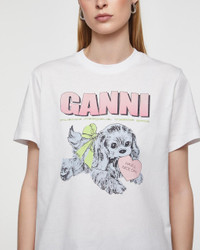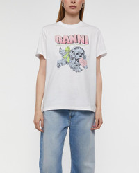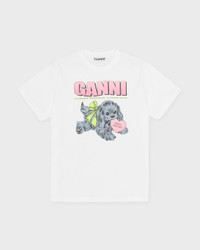 T-shirt Basic Cotton Jersey Neon Puppy by Ganni. Crafted from soft and lightweight basic jersey, it feels comfortable against the skin and is easy to wear all day. Featuring a classic crew neckline and short sleeves, it offers a relaxed fit that’s perfect for everyday wear as well as more casual occasions. The front is adorned with a graphic Ganni print that adds a modern and playful touch. Size and Fit - Fits true to size, choose your usual size Specification - Article number - ID: 176555-010 - Brand: Ganni - Color: White - Washing Instructions: Machine wash - Made of: 100% Organic Cotton