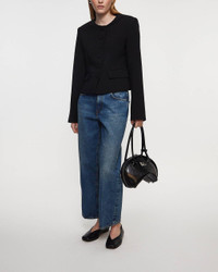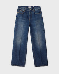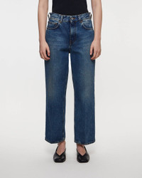 Jeans Cropped Vintage Blue Denim from Dagmar. These Cropped Denim jeans are made from 100% organic cotton and feature a relaxed fit with straight legs. With a mid-rise waist and cropped length, they have a classic 5-pocket design and pressed creases. Perfect for both casual and more polished looks. The product belongs to the W Sustain category because it's made of sustainable materials. Wash: Vintage Blue Size and Fit - Fits true to size, choose your usual size - The model is 172 cm tall and is wearing size 27 Specification - Article number - ID: 175477-022 - Brand: Dagmar - Color: Blue - Washing Instructions: Machinie wash - Made of: 100% Organic cotton