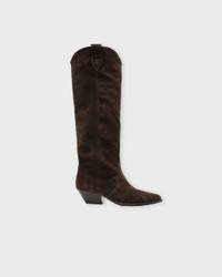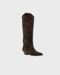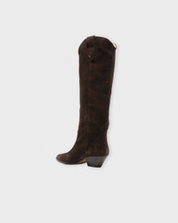 Denvee Boots from Isabel Marant. Trendy knee-high boots crafted from soft suede, featuring block heels, pointed toes, and pull tabs. The boots are inspired by classic Western silhouettes. Size and Fit - Fits true to size, choose your usual size Specification - Article number - ID: 176298-950 - Brand: Isabel Marant - Color: Chocolate