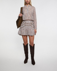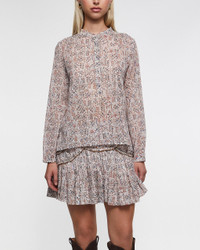 Blouse Maria by Isabel Marant Etoile. The Maria blouse is a bohemian-inspired piece crafted from printed cotton voile with a beautiful tapestry pattern. It features a round neckline with a button tab, structured shoulder yokes, and long sleeves finished with slim buttoned cuffs. The relaxed fit ensures comfort and effortless styling—perfect paired with jeans or skirts for a casually chic look. Size and Fit - Fits true to size, choose your usual size - The model is 176 cm tall and is wearing size FR 38 Specification - Article number - ID: 176322-098 - Brand: Isabel Marant Etoile - Color: Ecru - Washing Instructions: Dry clean - Made of: 100% cotton