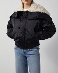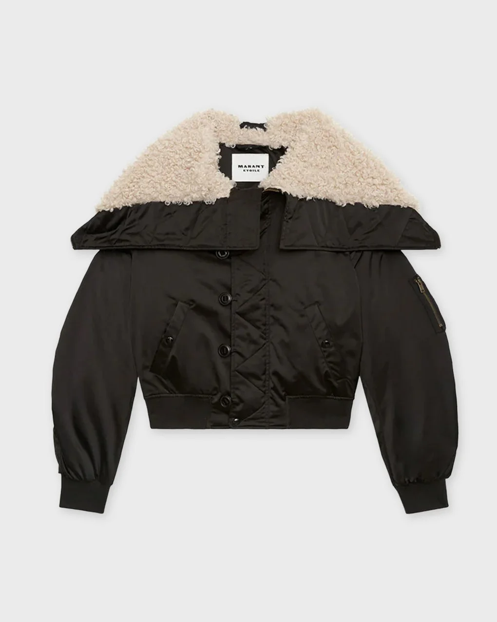 Jacket Elisa from Isabel Marant Etoile. The Elisa jacket features a contemporary bomber-inspired design that offers a unique and relaxed look. Lined with soft fabric for extra comfort and warmth, it comes with a hood, ribbed trims, and a combined zip-and-button closure for a sleek yet laid-back style – perfect for both everyday wear and casual occasions. Size and Fit - Fits true to size, choose your usual size - The model is 172 cm tall and is wearing size FR 38 Specification - Article number - ID: 176320-000 - Brand: Isabel Marant Etoile - Color: Black - Washing Instructions: Machine wash - Made of: 100% Polyester