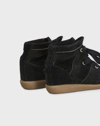 Shoes Bobby from Isabel Marant. The shoes are a sleek and sporty model that combines fashion with comfort. Made from luxurious suede and textile, they offer a sophisticated look. With a lightweight and flexible sole, they provide excellent comfort throughout the day, no matter the activity. The modern design, featuring a contrasting rubber sole and discreet logos, makes them easy to pair with various outfits. Size and Fit - Fits true to size, choose your usual size Specification - Article number - ID: 175019-000 - Brand: Isabel Marant Etoile - Color: Black