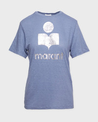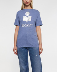 T-Shirt Zewel by Isabel Marant Etoile. An everyday staple with an iconic edge. The Zewel T-shirt is crafted from soft cotton, featuring a classic crew neck and straight hem. Finished with the signature “Marant” logo print at the front. Ideal for styling with denim or tailored pieces. The product is under the W Sustain category as it is made of sustainable materials. Size and Fit - Fits true to size, choose your usual size - The model is 176 cm tall and is wearing size S Specification - Article number - ID: 176329-020 - Brand: Isabel Marant Etoile - Color: Light blue - Washing Instructions: Machine wash - Made of: 100% Organic Cotton