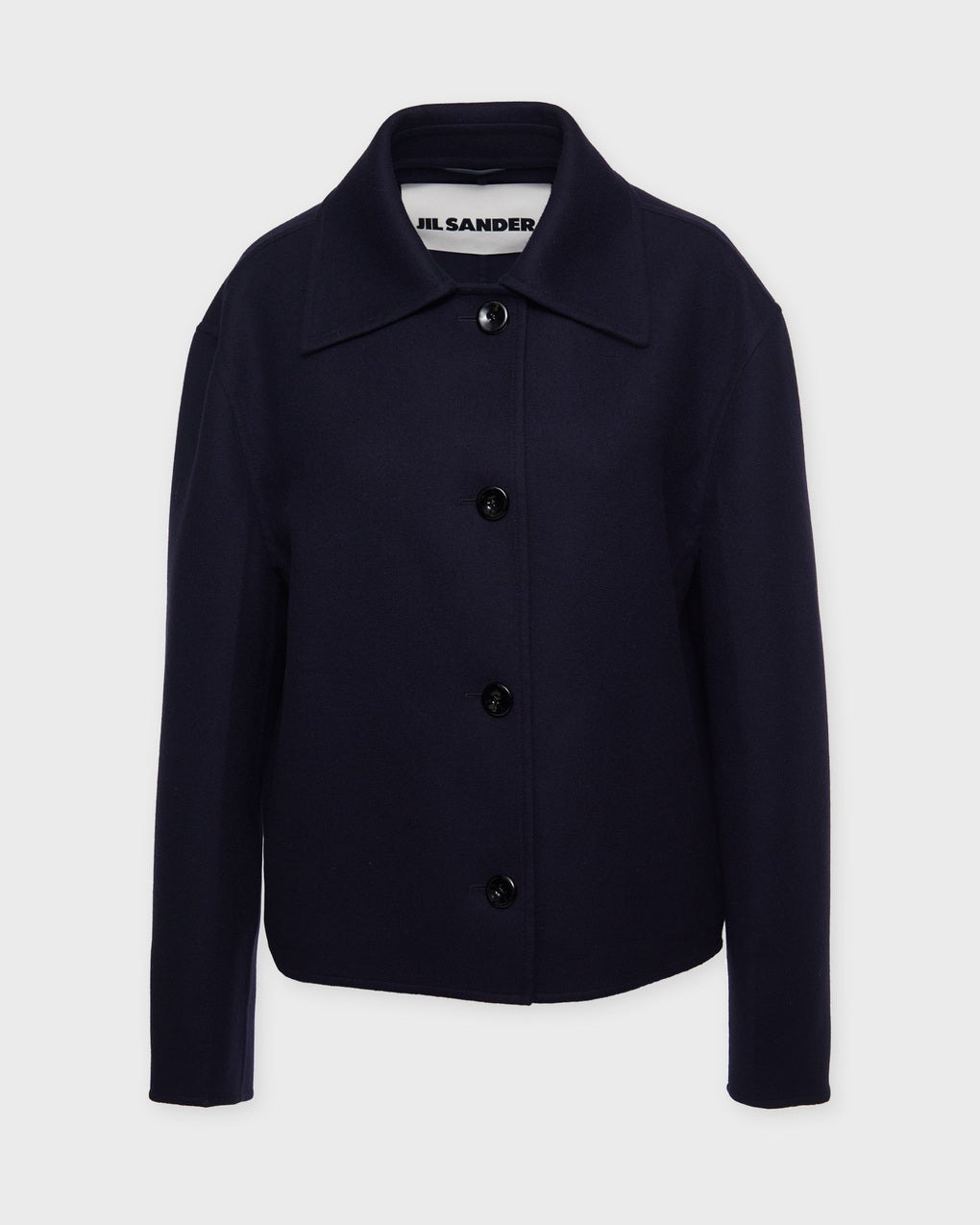 Jacket Overshirt 72 from Jil Sander. A timeless and sophisticated jacket with a straight, minimalist silhouette. Designed with a classic shirt collar, front button closure, and subtle seam details that enhance the minimalist look. Size and Fit - Fits true to size, choose your usual size - The model is 176 cm tall and is wearing size 36 Specification - Article number - ID: 176350-246 - Brand: JIL SANDER - Color: Midnight