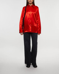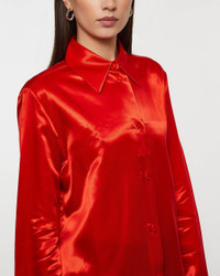 Shirt 95 from Jil Sander. This relaxed fit shirt combines style with comfort through its relaxed fit and elegant design. Made from Cupro, a soft and sustainable material with a glossy, textured surface, it offers a luxurious feel. The fine collar and discreet buttons add a sleek touch, while the deep red color brings a subtle elegance. Perfect for dressed-up occasions. Size and Fit - Fits true to size, choose your usual size - The model is 179 cm tall and is wearing size S Specification - Article number - ID: 173833-040 - Brand: JIL SANDER - Color: Red - Washing Instructions: Wash instructions: Dry clean - Made of: Made from 100% Cupro