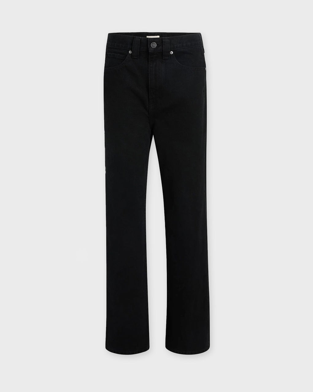 Bonnie Jean Carlyle Jeans from Khaite. Jeans designed to sit low on the hip, creating a relaxed silhouette with a contemporary feel. This style combines classic five-pocket denim detailing with a slightly dropped rise for a modern look. Size and Fit - Fits true to size, choose your usual size - The model is 176 cm tall and is wearing size 27 Specification - Article number - ID: 176332-000 - Brand: Khaite - Color: Black - Washing Instructions: Hand wash - Made of: Rigid denim (100% cotton)