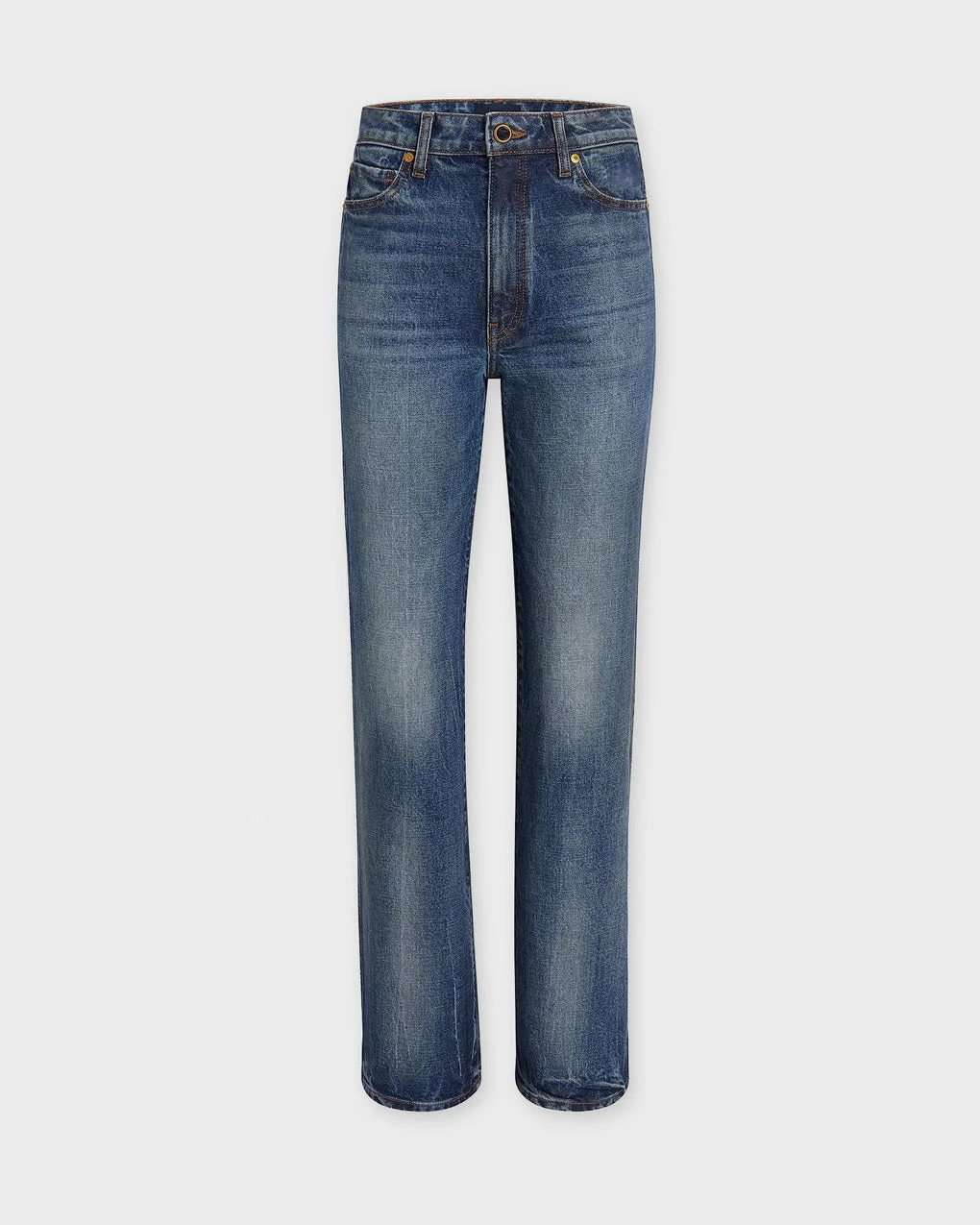 Jeans Danielle from Khaite. Designed to visually elongate the legs, these high-waisted jeans enhance the silhouette with a straight, subtly flared fit in stretch denim. Each pair is finished by hand. Size and Fit - Fits true to size, choose your usual size - The model is 175 cm tall and is wearing size 26 Specification - Article number - ID: 177407-899 - Brand: Khaite - Color: Indigo - Washing Instructions: Hand wash - Made of: 98% cotton, 2% polyurethane