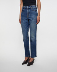 Jeans Viv Jean Harkins from Khaite. A pair of jeans with a slim fit and an ankle-length cut. This mid-rise style reimagines the classic cigarette pant in timeless five-pocket denim with a touch of stretch for extra comfort. Each pair is finished with an antiqued nickel button featuring the “Khaite” logo. Size and Fit - Fits true to size, choose your usual size - The model is 176 cm tall and is wearing size 27 Specification - Article number - ID: 176335-508 - Brand: Khaite - Color: Washed blue - Washing Instructions: Hand wash - Made of: Stretch Denim (98% cotton, 2% polyurethane)