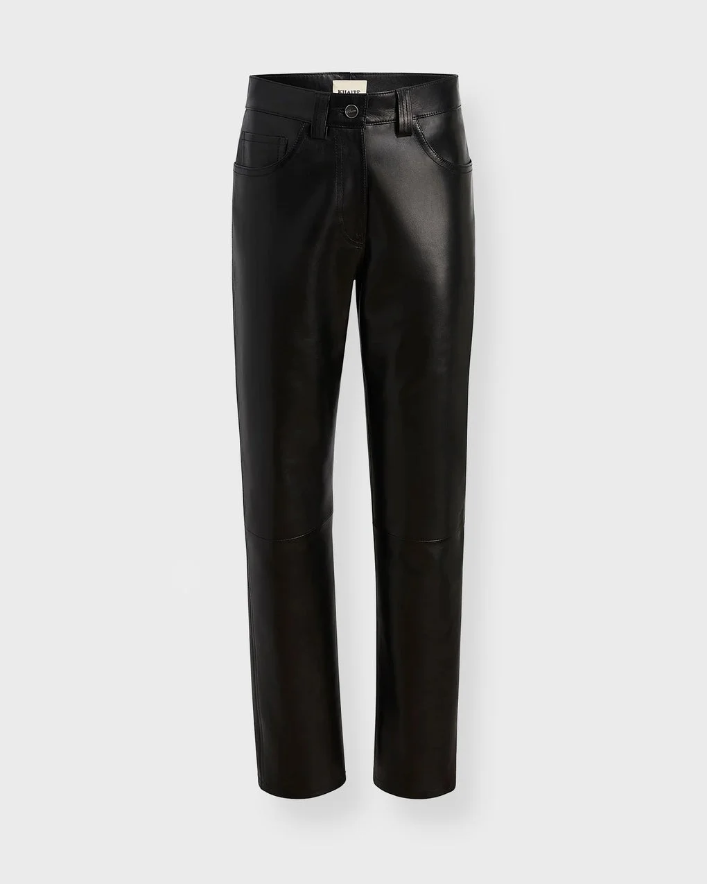 Pants Callum from Khaite. These trousers are crafted for a relaxed yet tapered fit in buttery-soft, lightweight plonge leather, offering a smooth touch and refined drape. The silhouette balances a low rise with a slightly bowed leg, drawing inspiration from vintage men’s denim. Finished with a signature button for an elevated, polished look. Size and Fit - Fits true to size, choose your usual size - The model is 175 cm tall and is wearing size 4 Specification - Article number - ID: 177413-000 - Brand: Khaite - Color: Black - Washing Instructions: Dry Clean - Made of: 100% leather