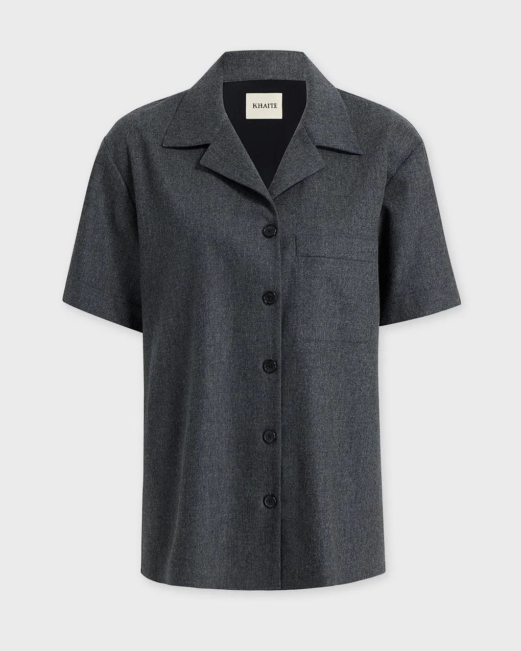 Top Riordan from Khaite. A menswear-inspired shirt with a classic collar, designed for a relaxed fit in lightweight and luxurious Italian wool-cashmere with a beautiful drape. The shirt is detailed with a chest pocket and front buttons. Size and Fit - Fits true to size, choose your usual size - The model is 177 cm tall and is wearing size S Specification - Article number - ID: 176346-091 - Brand: Khaite - Color: Grey - Washing Instructions: Dry clean - Made of: Wool cashmere shirting (100% wool)
