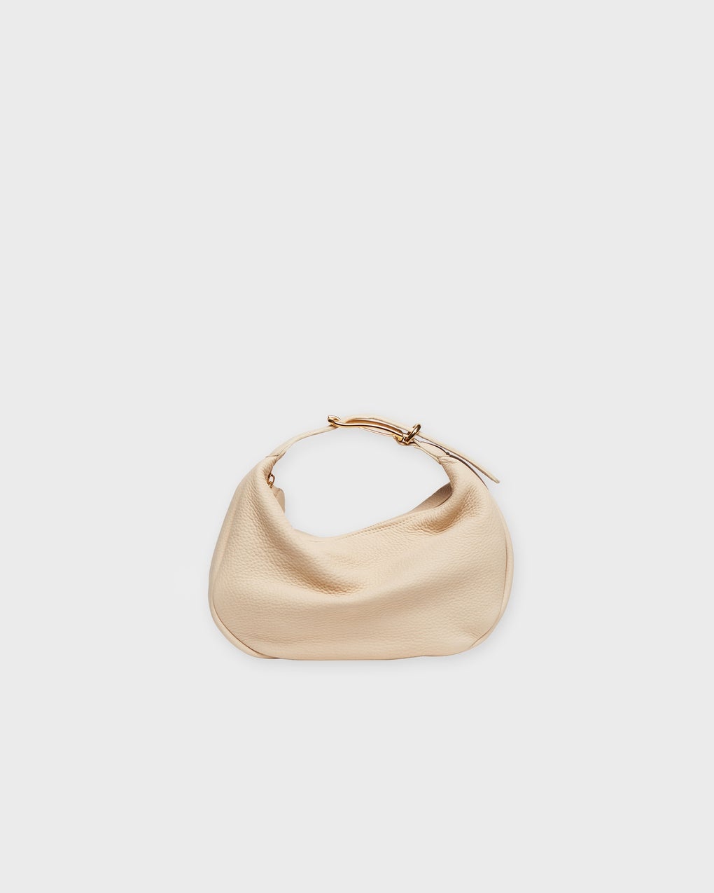 Bag Moon Pouch from Liffner. A mini bag in an elegant crescent shape, crafted from leather. The bag closes with a zipper to keep your belongings secure, while a slender buckle on the handle adds a sophisticated touch. Finished with gold details. Specification - Article number - ID: 176414-081 - Brand: Liffner - Color: Cream