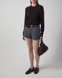 Shorts Annora from Lisa Yang. Knitted in mid-weight, double-face cashmere for both softness and structure. The shorts feature a relaxed fit and a cropped silhouette, complemented by a mid-rise elastic waistband and tailoring-inspired details like a faux fly and belt loops. Size and Fit - Fits true to size, choose your usual size - The model is 176 cm tall and is wearing size 1 Specification - Article number - ID: 177433-837 - Brand: LISA YANG - Color: Granit - Washing Instructions: Dry Clean - Made of: 100% cashmere