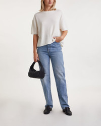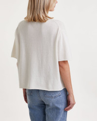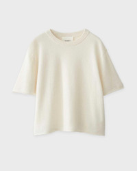 T-shirt Cila from Lisa Yang. Elegant fine knit t-shirt in 100% cashmere. Designed for a relaxed fit and featuring a classic round neckline. Size and Fit - Fits true to size, choose your usual size - The model is 176 cm tall and is wearing size 1 Specification - Article number - ID: 169892-011 - Brand: LISA YANG - Color: Offwhite - Washing Instructions: Handwash - Made of: Made of 100% Cashmere