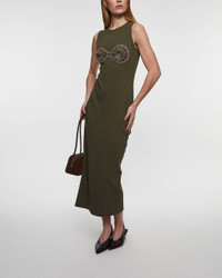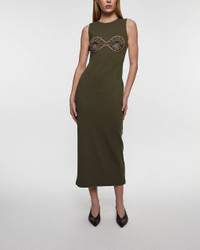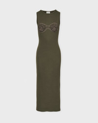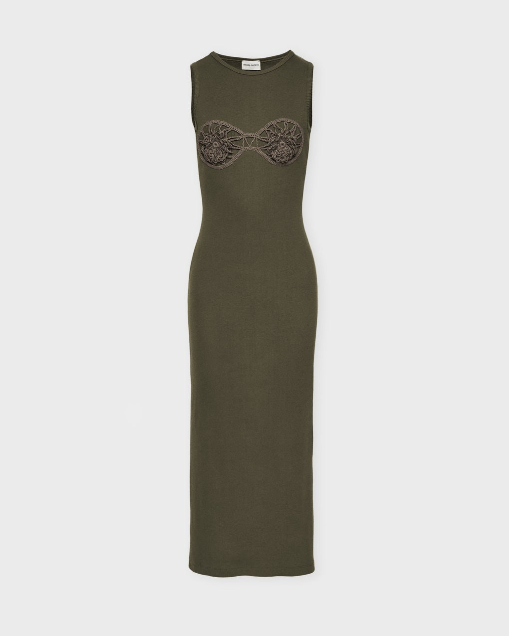 Crochet Bra Cotton Tank Dress from Magda Butrym. A trendy midi dress made from soft, ribbed material, designed for a body-hugging silhouette. The dress features a unique crochet bra detail over the bust, with a minimalist design that makes it perfect as a party dress or luxury dress for summer occasions. A versatile piece for both festive and everyday wear. Size and Fit - Fits true to size, choose your usual size Specification - Article number - ID: 175009-031 - Brand: Magda Butrym - Color: Green - Washing Instructions: Dry clean - Made of: Shell: 95% Cotton 5% Elastane, 100% Polyester