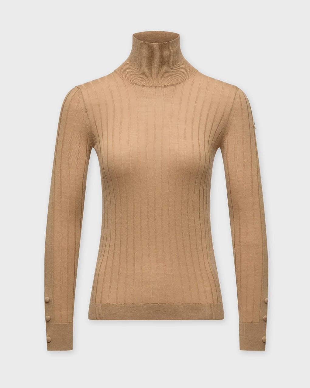 Sweater Logo Wool Polo Neck Jumper fran Moncler. This refined sweater features subtle jacquard detailing that reflects the brand’s signature style. Lightweight and versatile, the slim-fit polo neck is perfect for layering under heavier pieces or wearing on its own as the temperature drops. Size and Fit - Fits true to size, choose your usual size - The model is 177 cm tall and is wearing size S Specification - Article number - ID: 176712-033 - Brand: Moncler - Color: Khaki - Washing Instructions: Hand wash or dry clean - Made of: 100% Virgin Wool