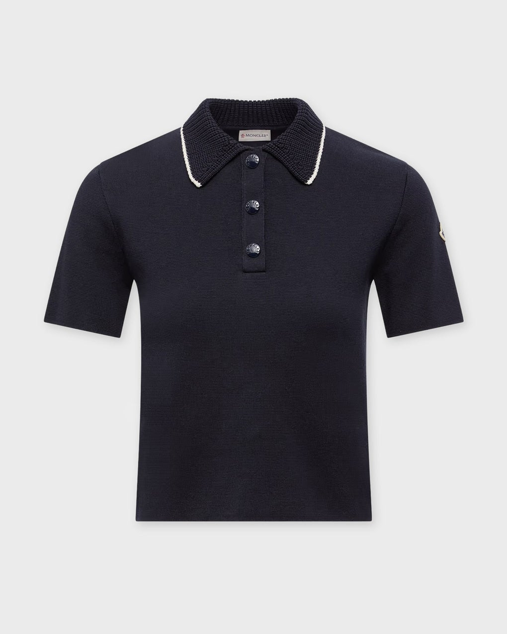 Knit Cotton Polo Shirt from Moncler. Adding a feminine note to a timeless silhouette, this cotton polo shirt features a rounded collar. The lightweight knit comes in a slim fit, easy to dress up or down with relaxed jeans or sophisticated slacks. Size and Fit - The model is 177 cm tall and is wearing size S Specification - Article number - ID: 176709-256 - Brand: Moncler - Color: Navy - Washing Instructions: Hand wash - Made of: 100% cotton