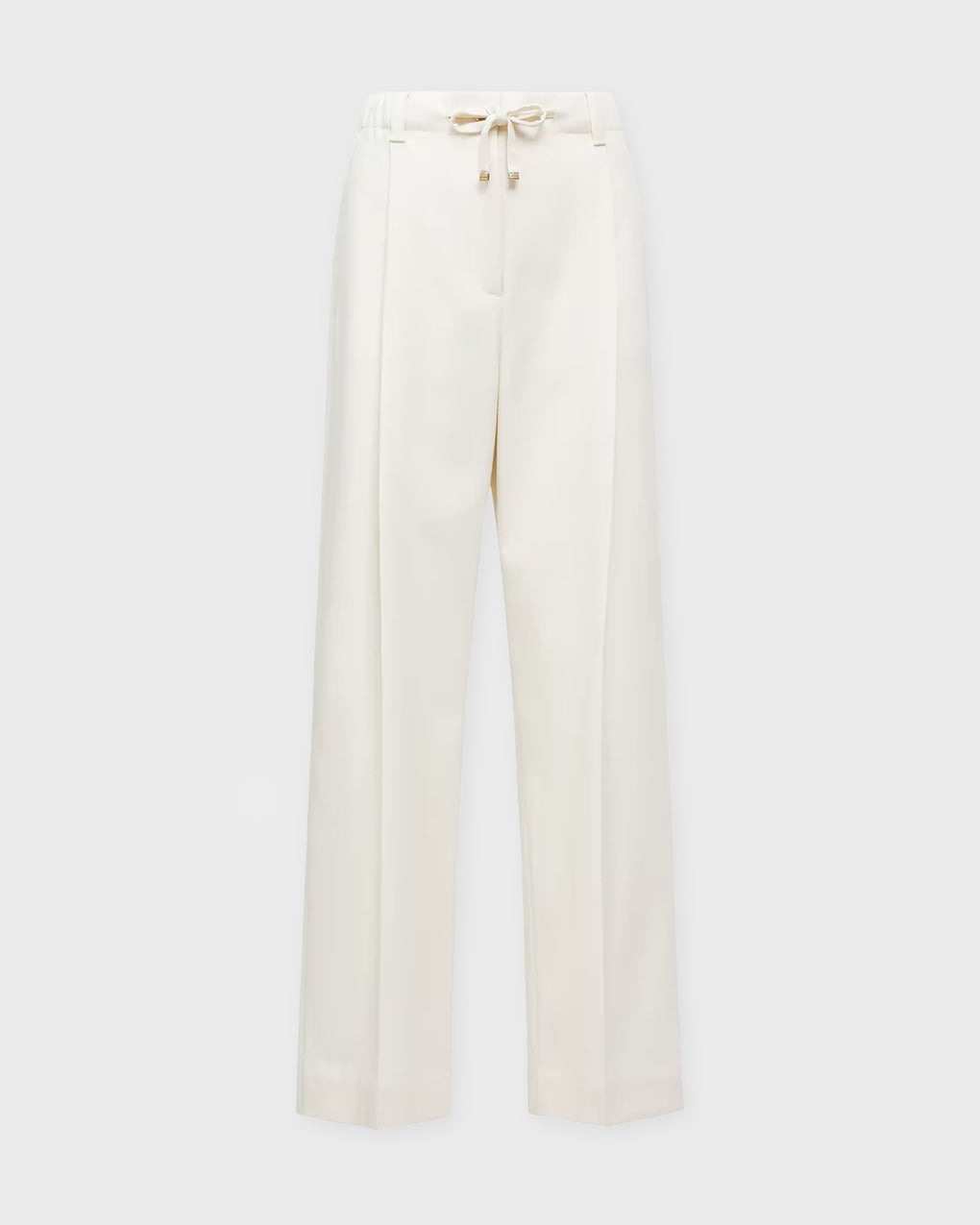 Trousers Wool Gabardine Tailored from Moncler. Sophisticated wide-leg trousers crafted from wool gabardine, creating a tailored silhouette. Features front pinces and an adjustable waistband for a comfortable fit. A timeless wardrobe staple combining style and comfort. Size and Fit - Fits true to size, choose your usual size - The model is 175 cm tall and is wearing size IT 40 Specification - Article number - ID: 176725-081 - Brand: Moncler - Color: Cream - Washing Instructions: Dry clean - Made of: 100% Virgin wool