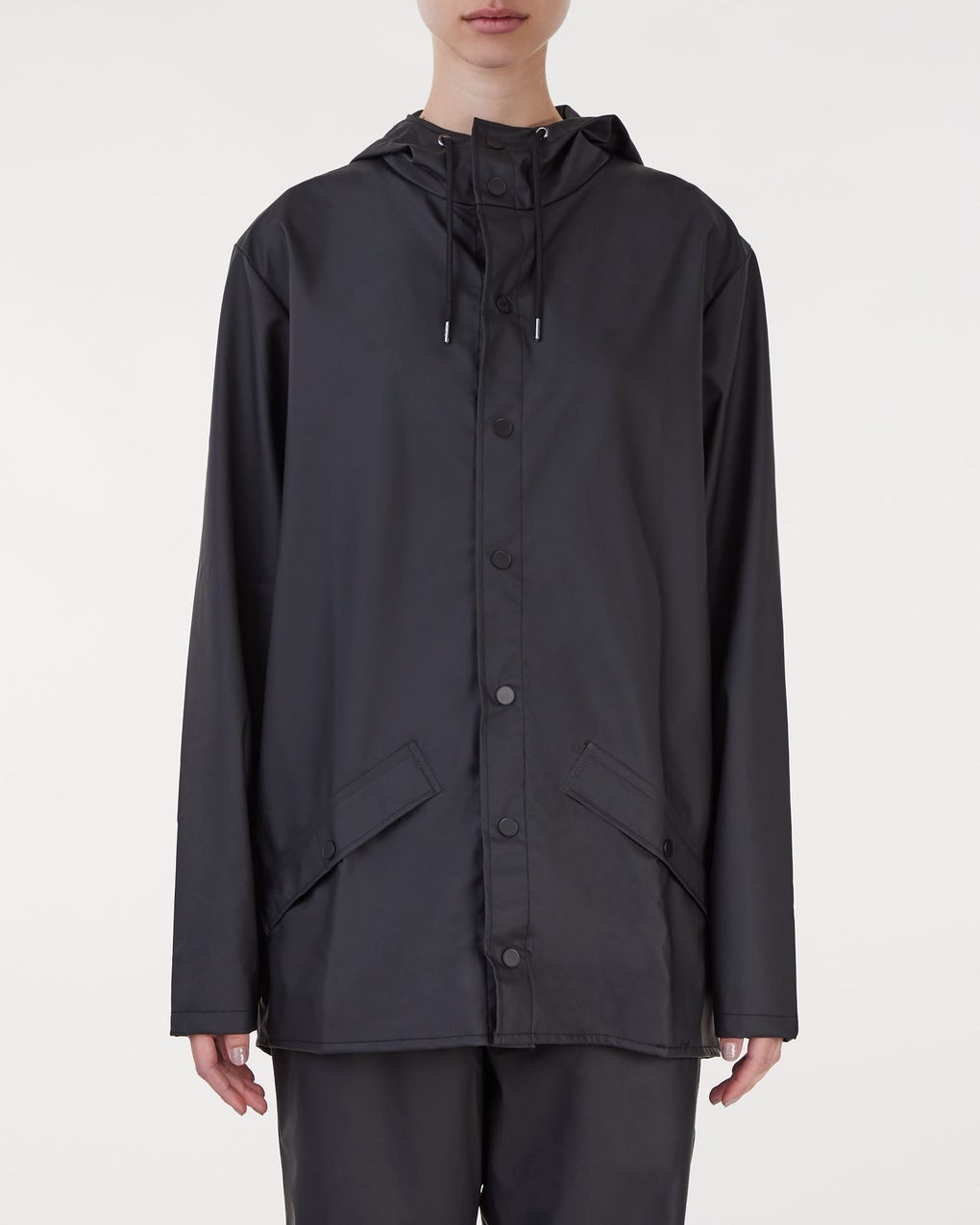 Rain jacket from Rains. A stylish unisex rain jacket with ventilation holes and a hood. The rain jacket has a straight shape with a minimal silhouette, soft surface and nice fit. Size and Fit - Fits true to size, choose your usual size - Garment length 77 cm - Bust 110 cm - Sleeve length 64.5 Specification - Article number - ID: 168249-000 - Brand: Rains - Color: Black - Washing Instructions: Machinewash max 30 degrees - Made of: Made of 100% polyester with polyurethane coating