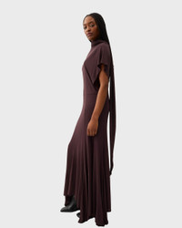 Lou Dress by Rodebjer. An elegantly draped dress crafted from fluid crepe jersey with a beautiful drape, softly flowing along the body for an airy silhouette. The dress is detailed with overlapping armholes and an asymmetric hemline, and is complemented by a detachable scarf that adds subtle movement and a sophisticated touch. Size and Fit - Fits true to size, choose your usual size Specification - Article number - ID: 177062-083 - Brand: Rodebjer - Color: Brown - Washing Instructions: Dry clean - Made of: 100% Viscose