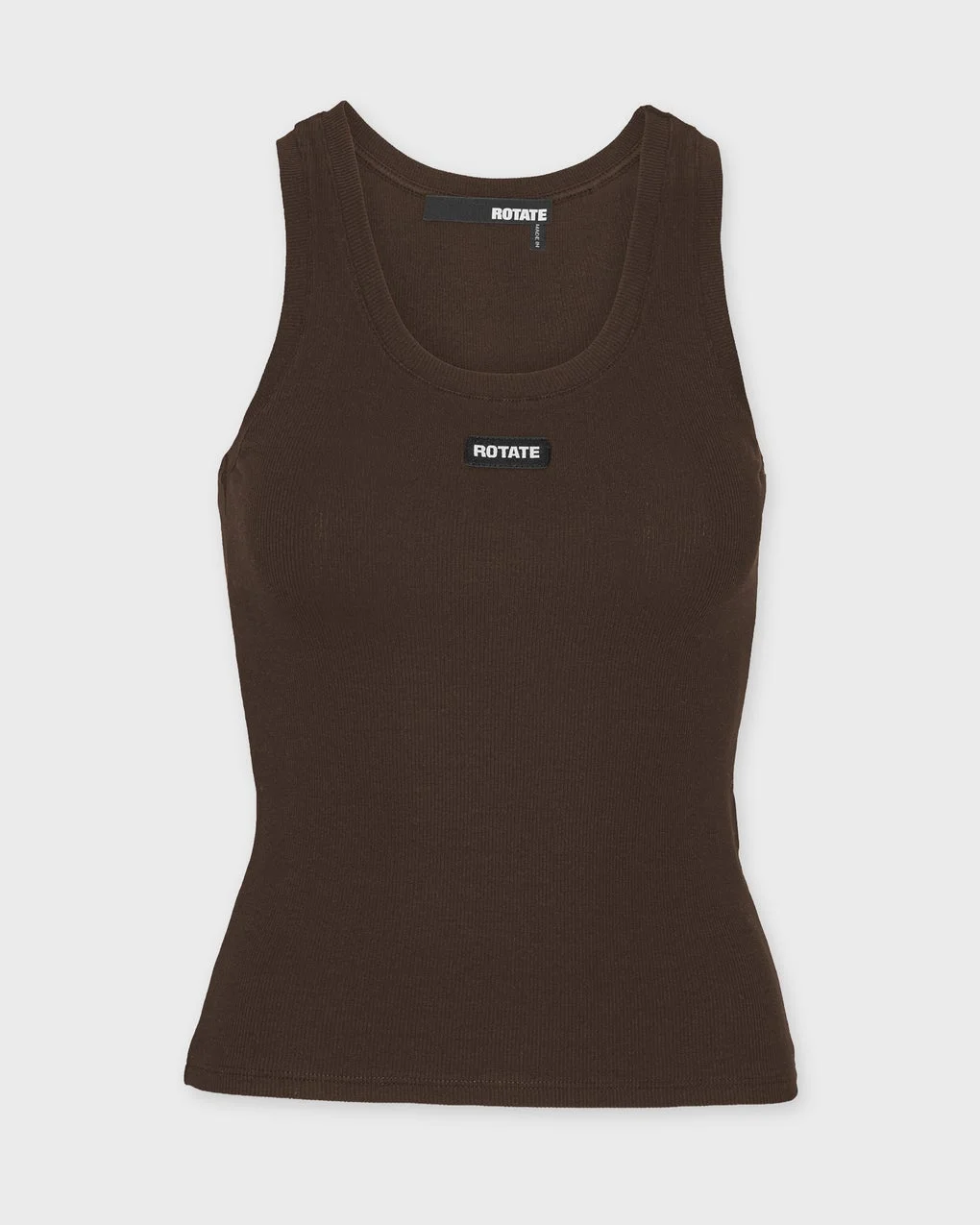 Top Basic Tank from ROTATE. The Basic Tank in white features a clean round neckline and a relaxed, effortless silhouette. Soft short sleeves and subtle front detailing add a refined touch, while a discreet back closure ensures a comfortable, secure fit. A modern essential for everyday styling. Size and Fit - Fits true to size, choose your usual size - The model is 176 cm tall and is wearing size S Specification - Article number - ID: 177909-1010 - Brand: Rotate - Color: Mole - Washing Instructions: Machine wash - Made of: 95% Cotton (Organic) 5% Elastane