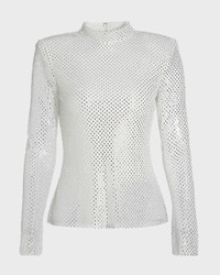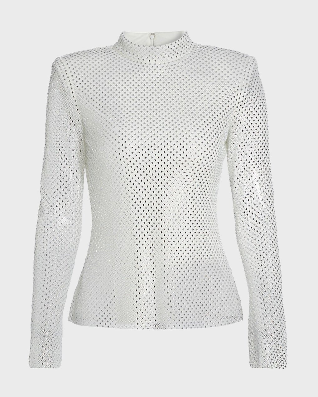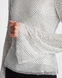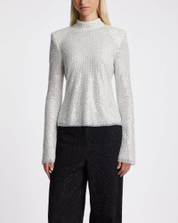 Top Silver Rhinestone Fishnet by Self-Portrait. On-trend dazzling rhinestone-encrusted fishnet top, this top's wraparound body-hugging cut gives it a sculpted, disco-ready feel. The top is normal in size, the fabric is made of stretch and closes at the back with a zipper. Removable shoulder pads. Style with denim and heels for a complete look. Size and Fit - Fits true to size, choose your usual size - The model is 176 cm tall ans is wearing a size UK8 Specification - Article number - ID: 174766-101 - Brand: Self-Portrait - Color: Silver