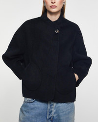 Jacket Windsor from Soeur. A revisited short coat with clean lines and a minimalist design. The asymmetrical opening and discreet pockets enhance its streamlined look. Made from thick double-faced wool with long, rounded sleeves. Size and Fit - Fits true to size, choose your usual size - The model is 176 cm tall and is wearing size 1 Specification - Article number - ID: 176752-836 - Brand: Soeur - Color: Noir - Washing Instructions: Dry clean - Made of: 80% Wool, 20% Polyamide