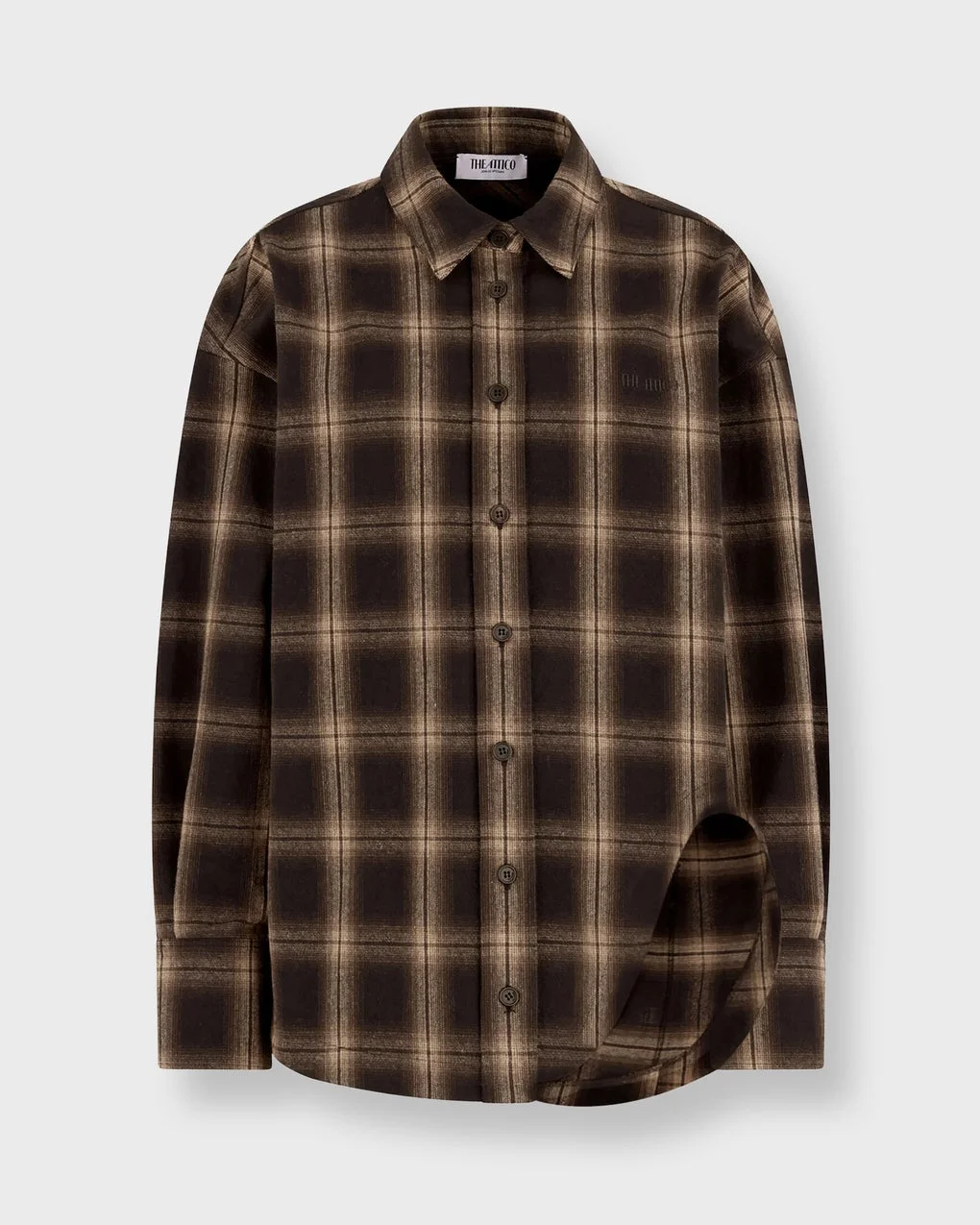 Shirt Diana from The Attico. The Attico's shirt reinterprets an Americana classic with cool, modern proportions. Tailored from checked cotton flannel, it's roomy in fit with artfully curved sleeves. Size and Fit - Fits true to size, choose your usual size - The model is 175 cm tall and is wearing size 38 Specification - Article number - ID: 177330-083 - Brand: THE ATTICO - Color: Brown - Washing Instructions: Machine wash at 30 degrees - Made of: 100% cotton