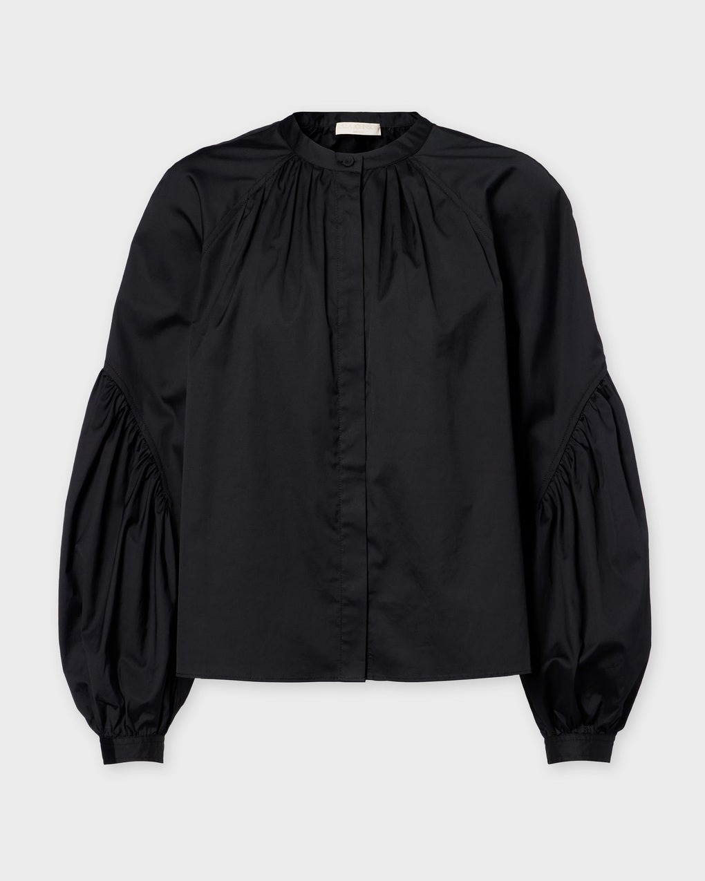 Blouse Rowena Long Sleeve from Ulla Johnson. The blouse is an elegant black wardrobe essential. It’s made from crisp poplin and features architectural sleeves with a relaxed fit that can easily be worn with denim. Size and Fit - Fits true to size, choose your usual size - The model is 175 cm tall and is wearing size US 4 Specification - Article number - ID: 177106-836 - Brand: Ulla Johnson - Color: Noir - Washing Instructions: Machine wash cold - Made of: 100% Cotton