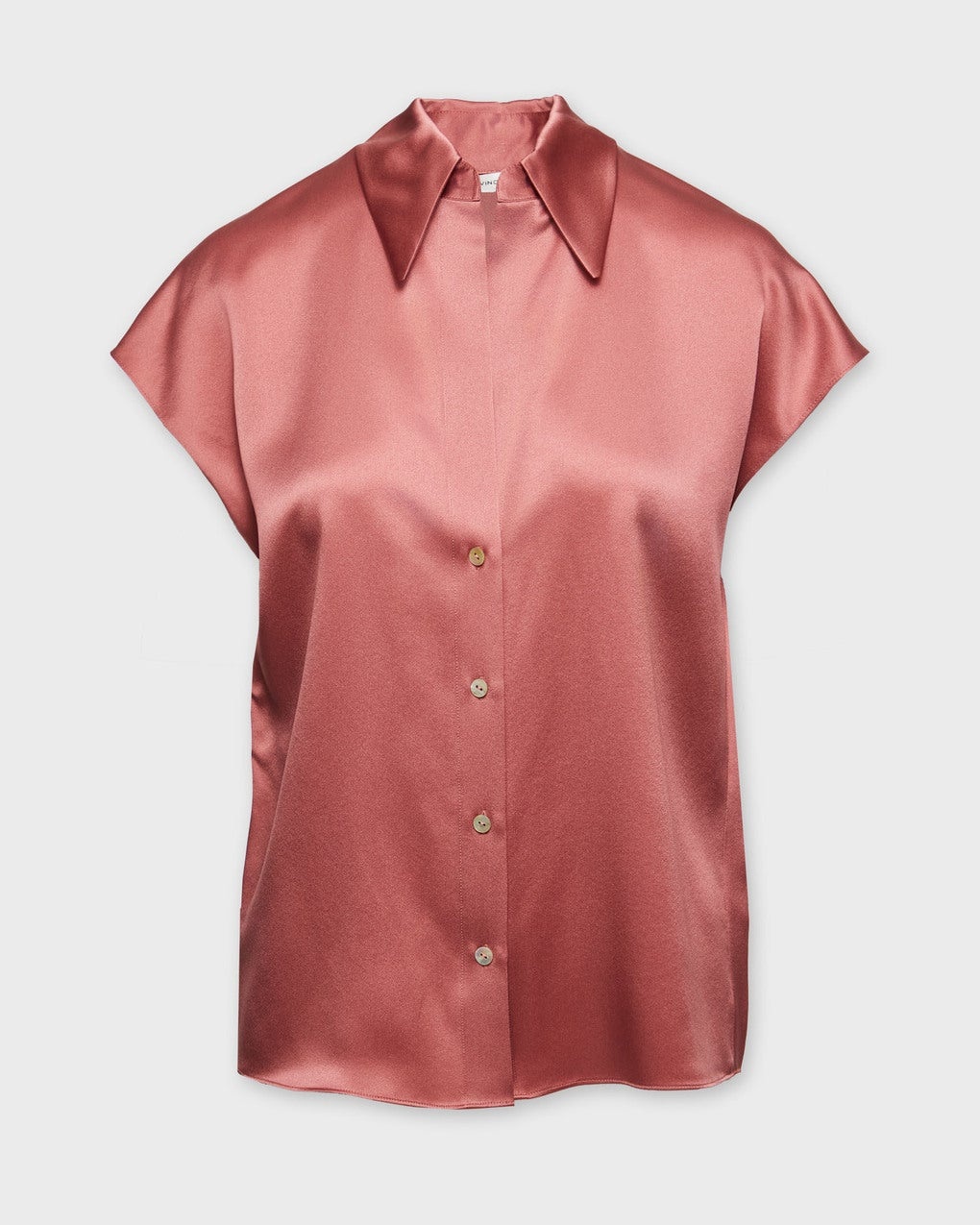 Blouse Silk Cap-Sleeve Ruched-Back Experience timeless elegance with this 100% silk blouse. It features a relaxed fit, pearl buttons, and subtle ruching at the back that creates a sophisticated silhouette. The soft, lustrous finish in the Peony Wood shade makes it a perfect choice for both everyday wear and special occasions. Size and Fit - Fits true to size, choose your usual size Specification - Article number - ID: 175771-756 - Brand: Vince - Color: Wood - Washing Instructions: Dry clean - Made of: 100% silk