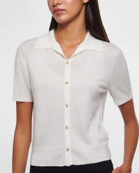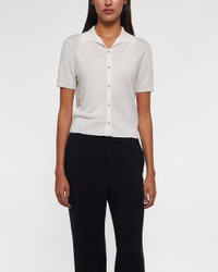 Collared Button-Front Sweater by Vince. A lightweight and soft collared sweater with a front button closure. Finely knit from an exclusive blend of wool and cashmere, offering breathable comfort with a touch of warmth. Finished with rib-knit trims and a fully fashioned fit. Size and Fit - Fits true to size, choose your usual size Specification - Article number - ID: 176218-011 - Brand: Vince - Color: Offwhite - Washing Instructions: Hand wash - Made of: 73% Wool, 21% polyester, 6% cashmere