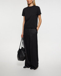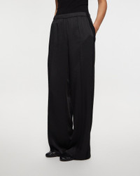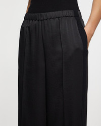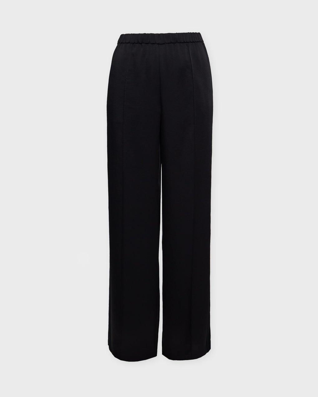 Mid Rise Side-Strap Crepe Pants from Vince. Elegant pants with a mid-rise waist, designed in a wide and relaxed silhouette made from luxurious crepe fabric. Detailed with a tonal knit stripe down the sides for a subtle sporty touch, and finished with an elastic drawstring waistband for optimal comfort. Size and Fit - Fits true to size, choose your usual size - The model is 172 cm tall and is wearing size S Specification - Article number - ID: 176213-000 - Brand: Vince - Color: Black - Washing Instructions: Hand wash cold - Made of: 100% Polyester