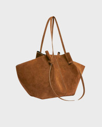 Due to high demand, your order may take a few extra days to ship. Large Mochi bag by Yuzefi. The Large Mochi is a sophisticated everyday bag featuring Yuzefi’s organic curves, soft folds, and signature knot. Made from LWG-certified Italian suede. Fits all your daily essentials. Comfortable to wear over the shoulder with a magnetic closure. Adjustable straps with the signature knot allow for the perfect length. Size and Fit - 51cm x 26 - 5cm x 31cm Specification - Article number - ID: 176631-268 - Brand: YUZEFI - Color: Cognac